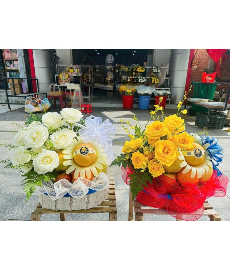 • Lẵng hoa đẹp theo mùa (kết hợp các loại hoa sau: hoa cúc trắng, mẫu đơn trắng, hoa sen trắng, hoa hồng trắng, hoa lan trắng, hoa tulip trắng, …