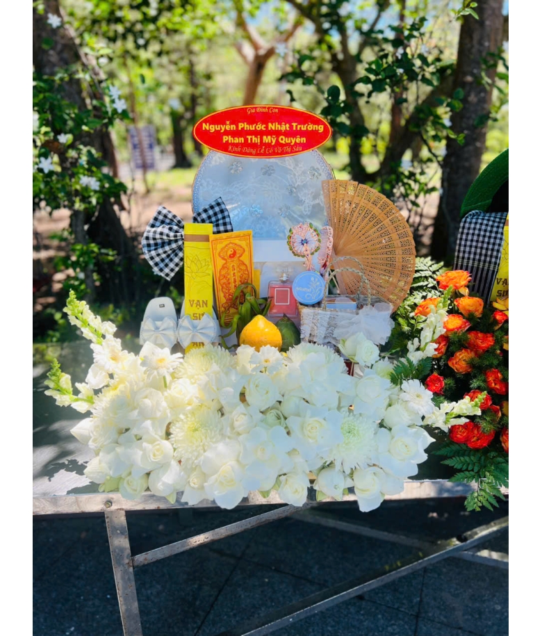 • Mâm cúng Cô Sáu và chiến sĩ tại Côn Đảo với đầy đủ hoa trái cây, vật phẩm lễ dâng cô được bày trí trên 1 mâm giúp quý khách thuận tiện viếng nghĩa trang Hàng Dương.